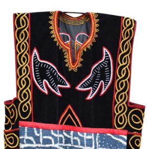 • Description : Toghu is a richly hand-embroidered velvet fabric with intricate and colorful designs. Traditionally worn by royalty, chiefs and dignitaries, it is often black with colorful embroidery, including geometric shapes and symbols representing cultural or spiritual aspects. This fabric is often used to make boubous and long dresses, usually for special occasions. Culture.